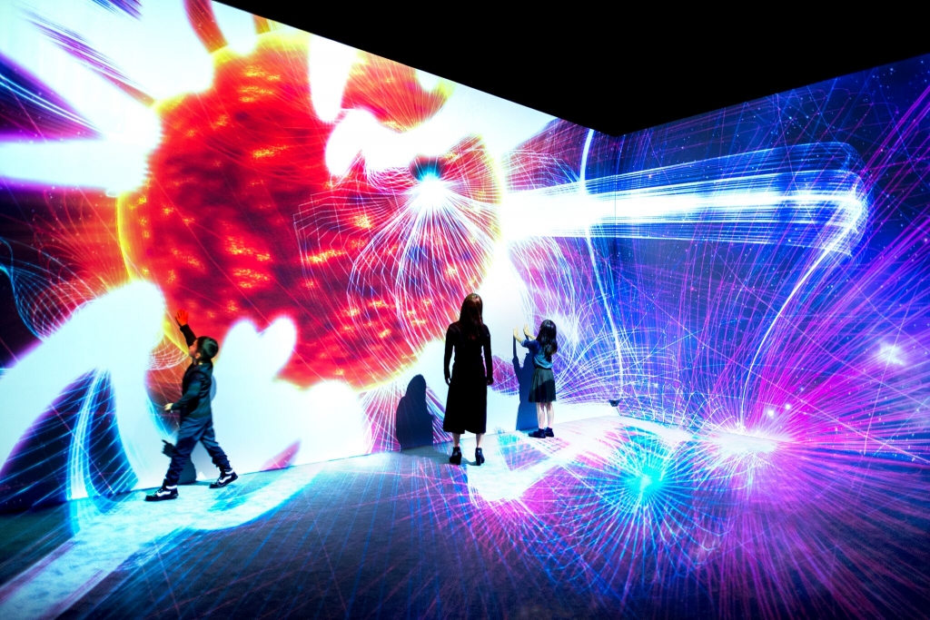 Actually based on three separate ‘worlds’ – Space, Earth and Electrons – this digital interactive installation reacts to the way you move around freely within the art space, building up a visual display demonstrating the various forces of magnetism that are usually invisible to the naked eye.